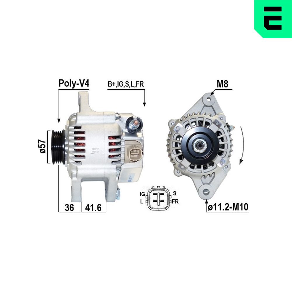 Informaciones artículos Cantidad de agujeros de fijación 2 Corriente de carga alternador [A] 80 Número de canales 4 Poleas con polea para correa poli V poleas - Ø [mm] 57 Sentido de giro Sentido de giro a la derecha (horario) Tensión [V] 12 | |