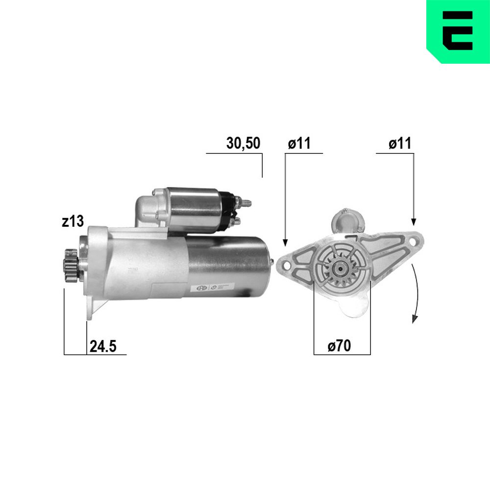 Informaciones artículos Cant. taladros roscados 3 Cantidad de agujeros de fijación 3 Diámetro de brida [mm] 82 Número de dientes 9 Pinza M8 B+, Pin 50 M6 Posición básica piñón [mm] 24,3 Potencia nominal [kW] 1,7 Restricción de fabricante Always Cross by OE Sentido de giro Sentido de giro a la derecha (horario) Tensión [V] 12 | |